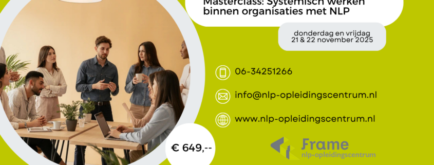 Wil je patronen en dynamieken binnen teams en organisaties beter begrijpen én beïnvloeden? In deze masterclass combineer je de inzichten van systemisch werk met de krachtige technieken van NLP. Je leert hoe onzichtbare processen en verhoudingen in organisaties het succes bepalen – en hoe je daar als professional effectief op inspeelt.